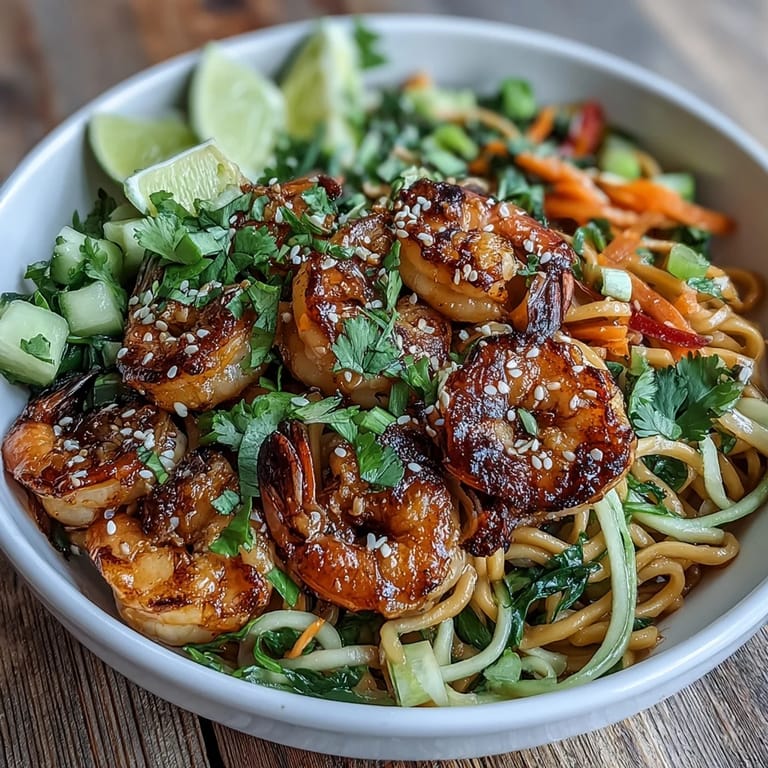 Das Schöne an dieser Schüssel ist, dass alles zur gleichen Zeit fertig sein muss, aber nicht gestresst—wenn Sie die Garnelen marinieren, während die Nudeln kochen, funktioniert alles wie ein gut geölter Mechanismus. Ich habe gelernt, alle meine Zutaten zu wiegen und vorzubereiten, bevor ich anfange, und das hat den Unterschied zwischen chaotisch und muhsam gemacht.