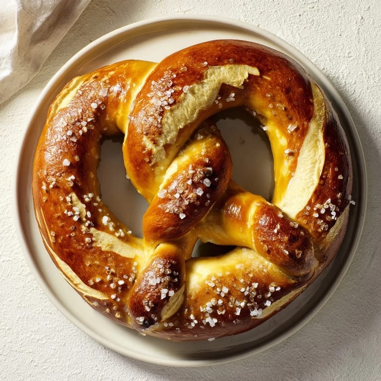 Merken Eine festliche Variante der klassischen deutschen Brezeln, geformt zu feierlichen Ringen und mit grobem Salz bestreut. Perfekt für Partys oder besondere Anlässe.
