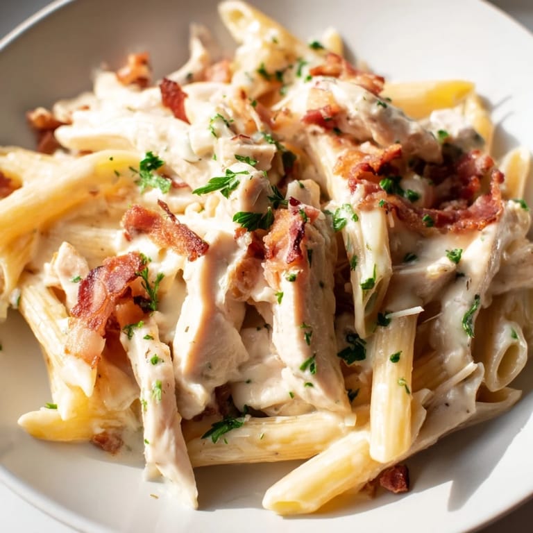 Merken An einem verregneten Dienstagabend stand ich in der Küche und starrte auf eine Packung Penne, die ich vergessen hatte. Mein Magen knurrte, und der Kühlschrank bot mir nur Hühnchen, Speck und Sahne. Ohne viel nachzudenken, warf ich alles in die Pfanne, und der Duft von gebratenem Speck füllte die Wohnung so intensiv, dass mein Nachbar an die Tür klopfte. Was als improvisiertes Abendessen begann, wurde zu meinem absoluten Lieblingsrezept. Seitdem koche ich diese cremige Penne mindestens zweimal im Monat.