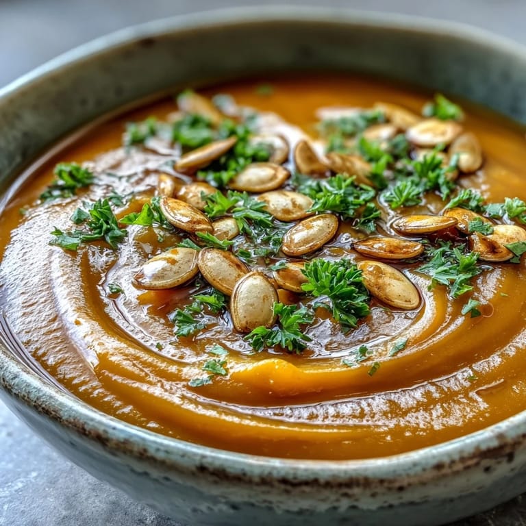 Merken Diese Kürbissuppe ist mehr als nur ein einfaches Gericht für mich, sie ist ein flüssiger Trost, der die Grenzen zwischen Nahrung und Seelenwärme verschwimmen lässt. Jedes Mal, wenn ich sie zubereite, erinnert mich der erste Löffel daran, dass die einfachsten Zutaten oft die tiefsten Freuden bereiten können.