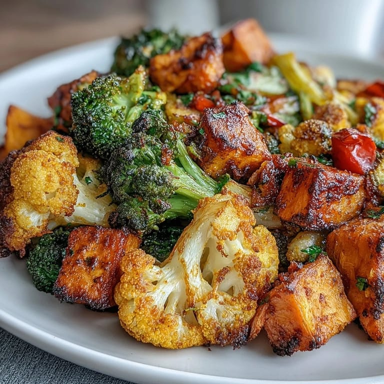 Merken There's something about the smell of turmeric hitting a hot pan that makes me feel like I'm actually doing something good for my body. I discovered this roasted vegetable situation during one of those weeks when I felt depleted, scrolling through wellness content at midnight, and decided to stop talking about eating better and just do it. The golden color that emerges from the oven is almost too beautiful to eat, but the real magic happens when you bite into a piece of caramelized sweet potato infused with those warming spices. It became my go-to when I needed to feel nourished rather than just fed.