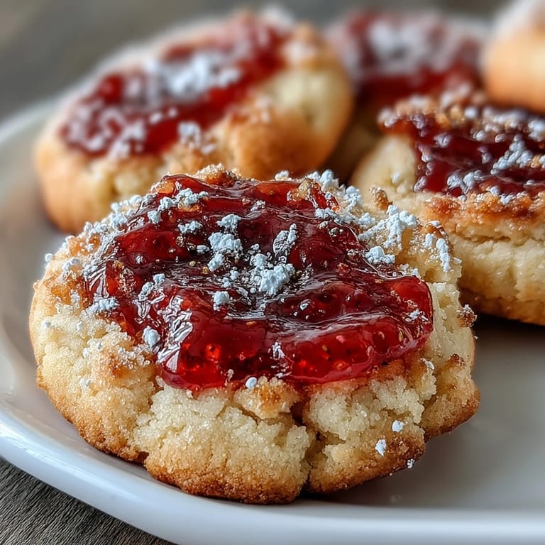 Merken Last summer, my neighbor brought a basket of these cookies to our impromptu backyard gathering, and I watched people reach for them three times over before anyone touched the store-bought cake. There was something magical about that buttery shortbread giving way to bright jam, the way powdered sugar dusted off on fingertips. I asked for the recipe that very evening, and now they're my go-to when I need something that feels homemade without the fuss.