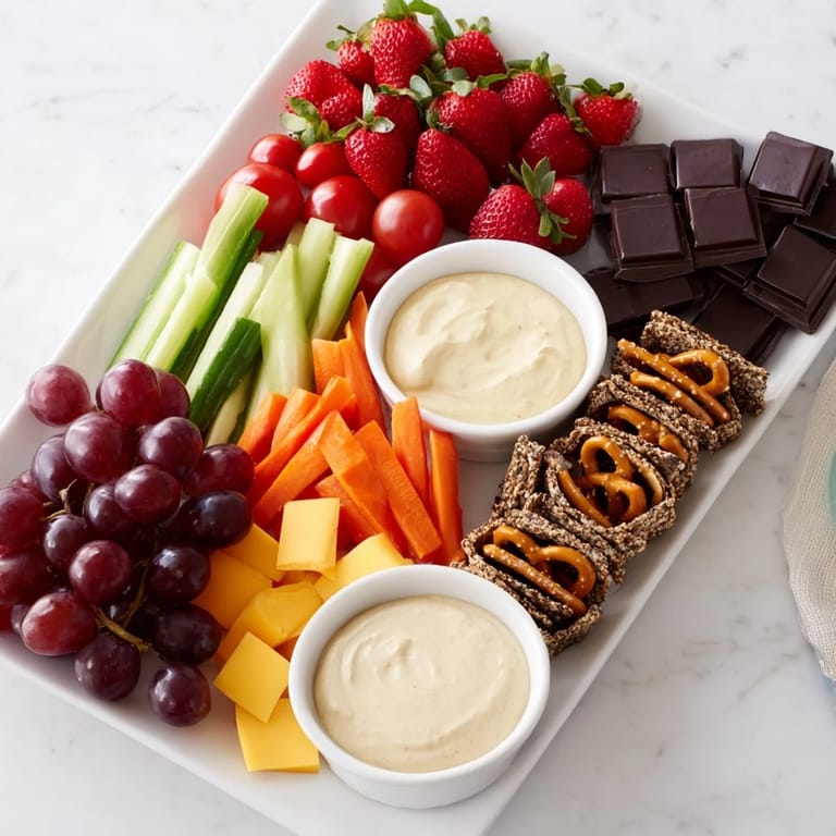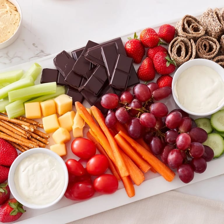 - Herzhafte Snacks: 1 Tasse Babykarotten, 1 Tasse Gurkenscheiben, 1 Tasse Kirschtomaten, 1 Tasse Cheddarkäsewürfel, 1 Tasse Truthahn- oder Hähnchenscheiben (optional, durch mehr Gemüse oder pflanzliche Aufschnittalternativen für Vegetarier ersetzbar), 1 Tasse Mini-Salzbrezeln, 1 Tasse Mehrkorncracker
