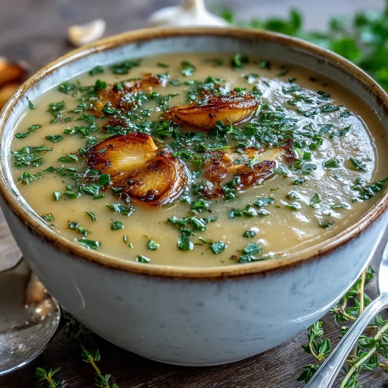 This soup pairs beautifully with a glass of crisp Sauvignon Blanc, which cuts through the richness of the garlic. Serve it with a side of warm sourdough or a baguette to soak up the savory broth, and don't forget a final sprinkle of fresh herbs for a pop of color.