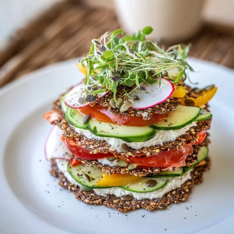 Es gab eine Zeit, in der glutenfrei bedeutete, dass du dich einfach abfindest—verstecke es unter Soße, entschuldige dich dafür. Aber das ist nicht, woran ich arbeite. Diese Türme sind bewusst, farbig und sie kosten dich nichts in Bezug auf die Aromen, die du liebst. Das glutenfreie Cracker und Brot sind hier nicht Abkürzungen, sie sind echte Zutaten, und wenn du die richtigen wählst, wirst du keinen Unterschied bemerken, außer vielleicht, dass alles ein wenig süßer schmeckt, ein wenig reiner.