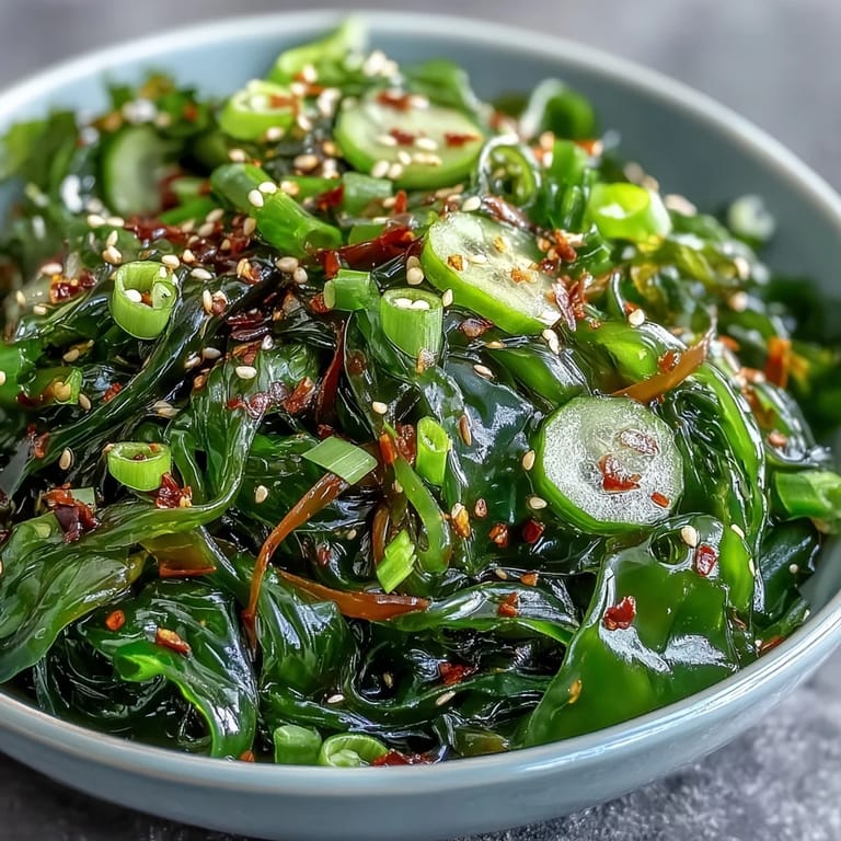 Merken Eines Nachmittags stand ich in einem kleinen japanischen Restaurant und beobachtete, wie der Koch eine schlichte Schüssel mit Wakame-Salat vorbereitete, die sofort nach Meer und gerösteten Sesamkörnern duftete. Das war der Moment, in dem mir klar wurde, dass die besten Gerichte oft die einfachsten sind. Zu Hause experimentierte ich herum, bis ich diese Version entwickelte, die genauso erfrischend und lebhaft schmeckt wie das Original, aber mit meinem eigenen Rhythmus zubereitet werden kann. Die knackigen Gurken, die süß-würzige Ingwerdressing und die zarten Algenfasern vereinigen sich zu etwas, das sich anfühlt wie ein Mini-Urlaub auf dem Teller.