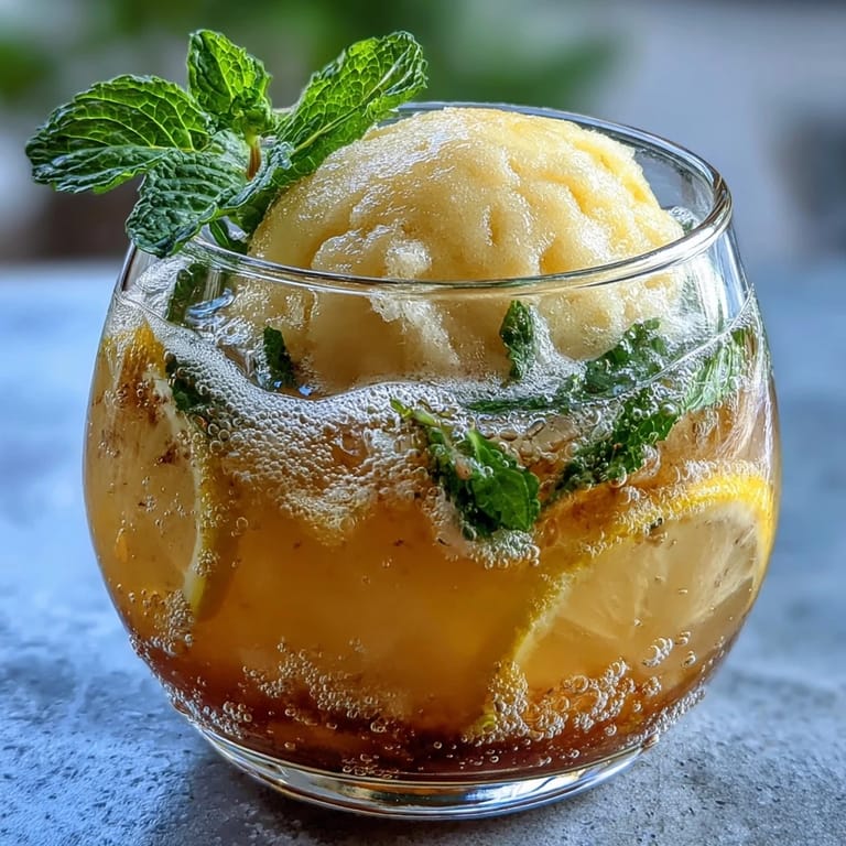 Serve your Limoncello Sorbet Float immediately after preparation to enjoy the perfect balance of icy sorbet and bubbly sparkling water. This dessert drink pairs beautifully with traditional Italian biscotti or light butter cookies on the side, allowing guests to dip and enjoy between sips. For an elegant presentation, serve in tall, slender glasses or vintage coupe glasses, and don't skip the garnishes—a twist of lemon zest and a sprig of fresh mint add both visual appeal and aromatic complexity. This float works wonderfully as a palate cleanser between courses at a multi-course dinner, or as a refreshing finale to a heavy Italian meal featuring pasta or risotto.