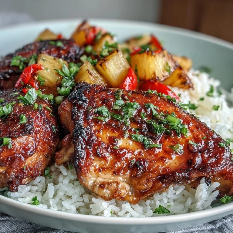 This fusion dish brings together the best of American comfort food and Asian-inspired flavors. The smoked paprika adds a subtle warmth, while the soy sauce deepens the savory notes. Fresh pineapple chunks burst with sweetness in every bite, complementing the tender chicken thighs that stay juicy throughout baking. It's a recipe that feels special enough for guests but simple enough for a Tuesday night.