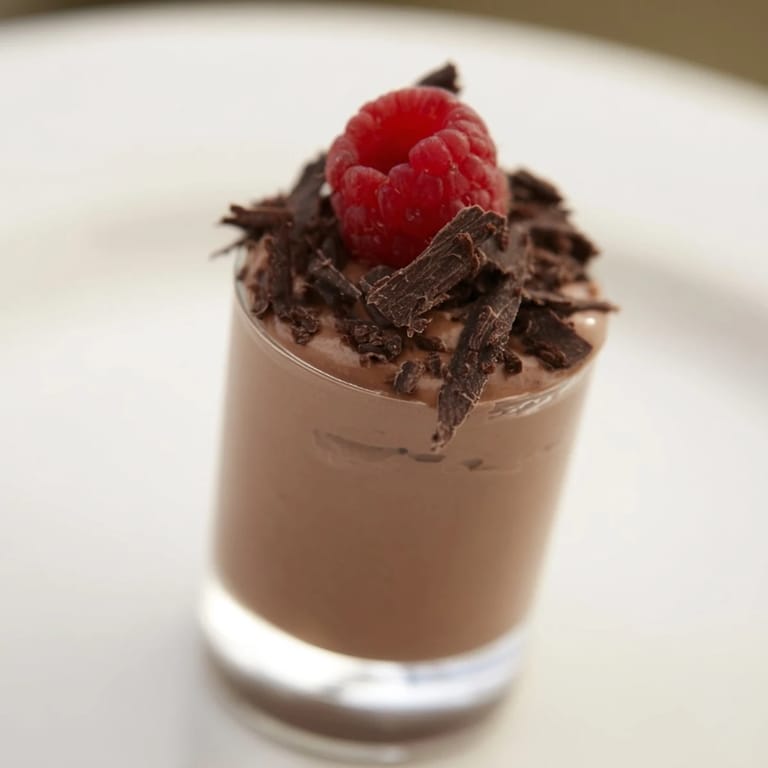 Merken Dieses sündhafte, luftige Schokoladenmousse wird in eleganten kleinen Schnapsgläsern serviert – perfekt für Partys oder als schickes Einzelgericht.