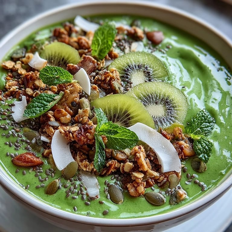 I made this for my sister on a random Tuesday when she was visiting, complaining about her usual breakfast routine. She picked up the spoon, took one bite of that creamy-crunchy combination, and just smiled silently. We didn't say much else, just ate the bowls slowly while watching the neighborhood wake up. That moment stuck with me—how a simple bowl of blended greens became the conversation we didn't have to have.