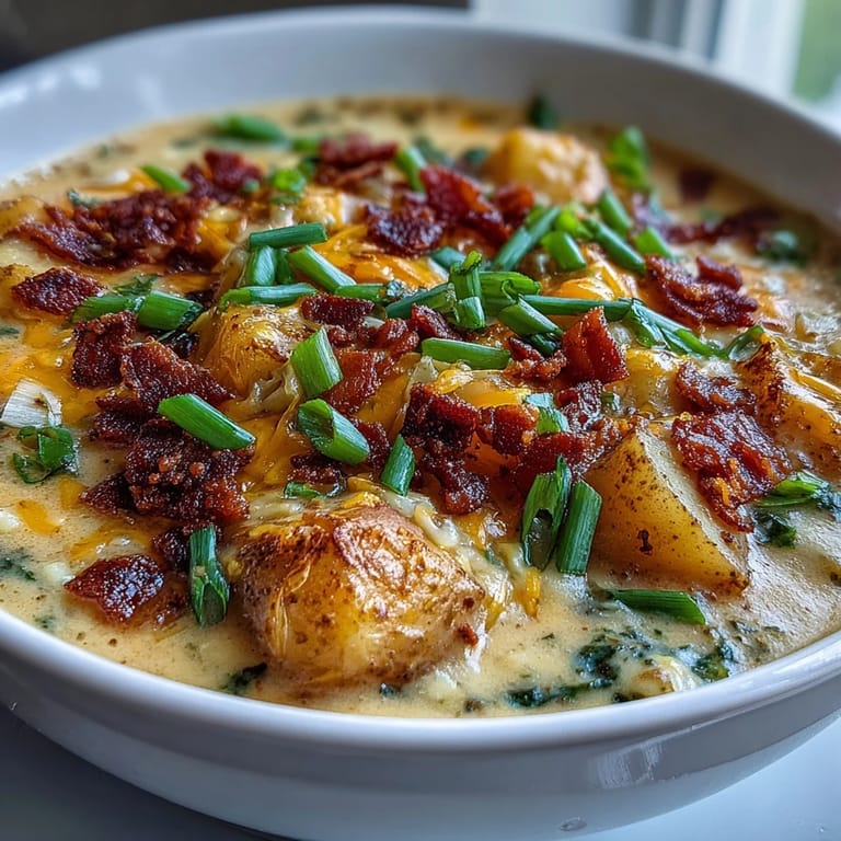 Merken My neighbor knocked on the door last March with a pot of soup that smelled like a loaded baked potato had melted into cream, and I've been chasing that comfort ever since. It turned out she'd lightened up the traditional indulgence by swapping heavy cream for Greek yogurt and using just enough bacon for flavor without the guilt. That conversation led me to the kitchen on a grey afternoon, potatoes in hand, determined to recreate what I'd tasted. What emerged was something I kept making well past St. Patrick's Day—a soup that tastes decadent but leaves you feeling nourished.