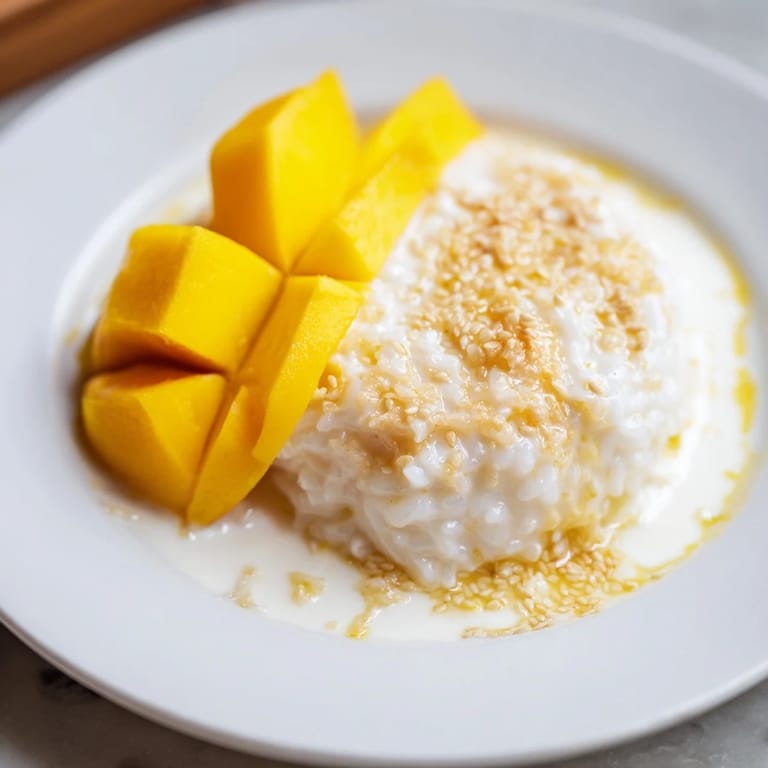 Merken An afternoon in Bangkok changed everything for my relationship with dessert. I'd wandered into a small street vendor's stall, the kind where the chaos of the city melts away, and watched an elderly woman prepare sticky rice with the certainty of someone who'd done it ten thousand times. The steam rose from her bamboo steamer, and the aroma—sweet, coconutty, alive—made me understand why this dish transcends simple sweetness. When she topped it with perfectly ripe mango, I tasted something that felt both deeply comforting and impossibly elegant.