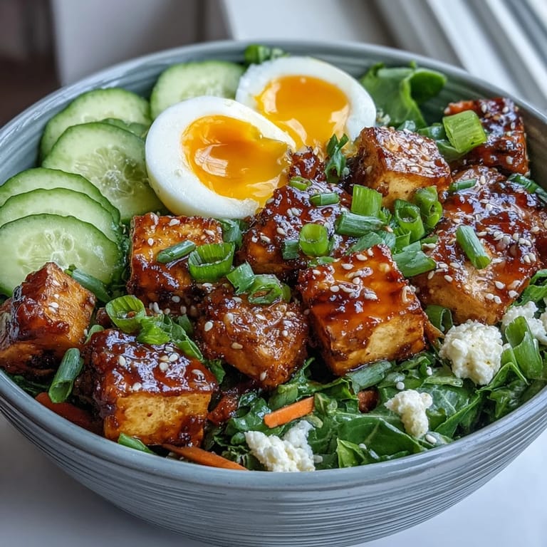 There's something about the combination of temperature contrasts and textures that makes this more than just a bowl of ingredients. The warm rice, the crispy tofu, the cool snap of cucumber, and that silky broken yolk all playing together create something that tastes more complex than the sum of its parts. The ginger scallion sauce is what knits it all together, transforming individual components into a unified dish that feels intentional and special.