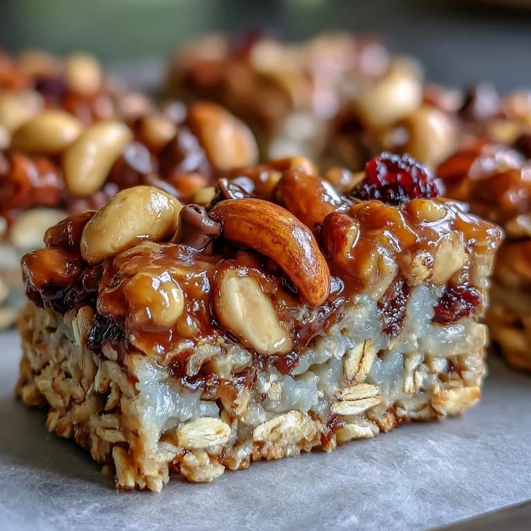 Merken My cousin showed up at a hiking trip with these bars tucked into her backpack, and I watched three people devour an entire batch before we even hit the trail. She'd made them the night before while telling me about this moment at her desk when she realized she was buying expensive granola bars every week, and something just clicked—why not make them at home? Now I keep a pan cooling on my counter almost constantly, partly because they disappear that fast, and partly because there's something satisfying about turning oats and honey into something that tastes like an indulgence.