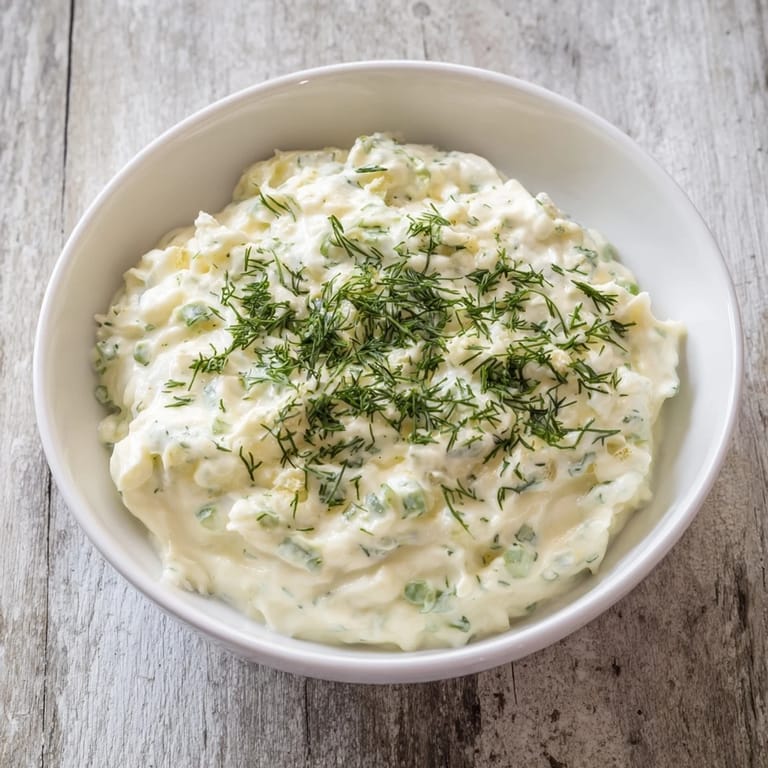 Die Basis aus saurer Sahne und Mayonnaise sorgt für die cremige Textur und den milden Geschmack.
